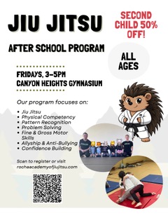 On the registration form: Parents should include their child’s name, contact details, and program selection (“After School – Yoga” or “After School – Martial Arts”) and note Canyon Heights under “Any other points.”